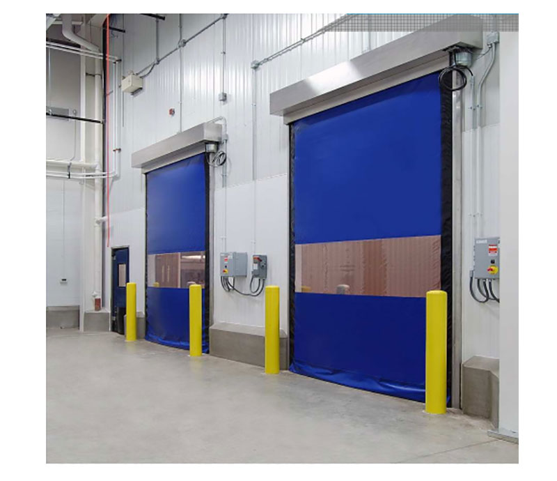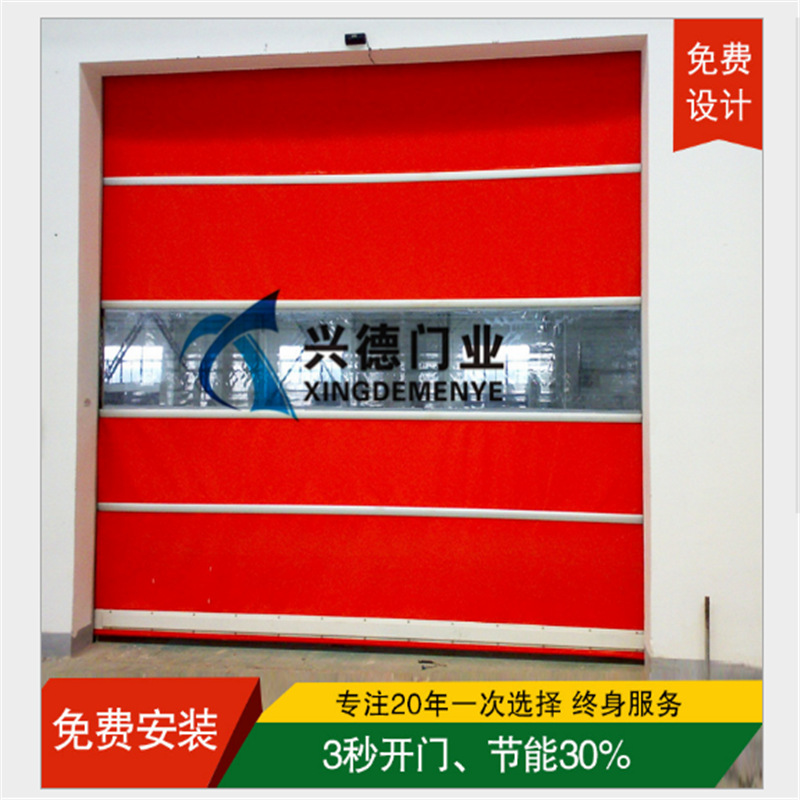 門布材質:一般以PVC或PVDF膜材作為簾布,特別是PVDF膜材抗老化性能更好,不易退色而且有自潔功能,做快速卷門非常適合。產地以德國產或法國產的為首選。厚度0.8mm-2.0mm。顏色有橙色、黃色、藍色、銀色、透明網格,黑色等,以橙色為首選,原因是橙色非常醒目,有警告作用,還有一定的防蟲功能。
